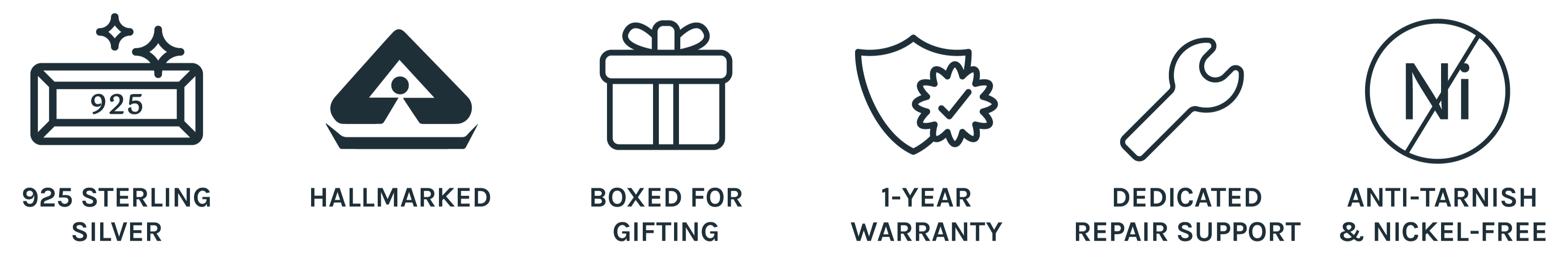 All our jewelry is crafted with 925 Sterling Silver and plated with luxurious 22k Yellow Gold or Rhodium for a timeless finish.